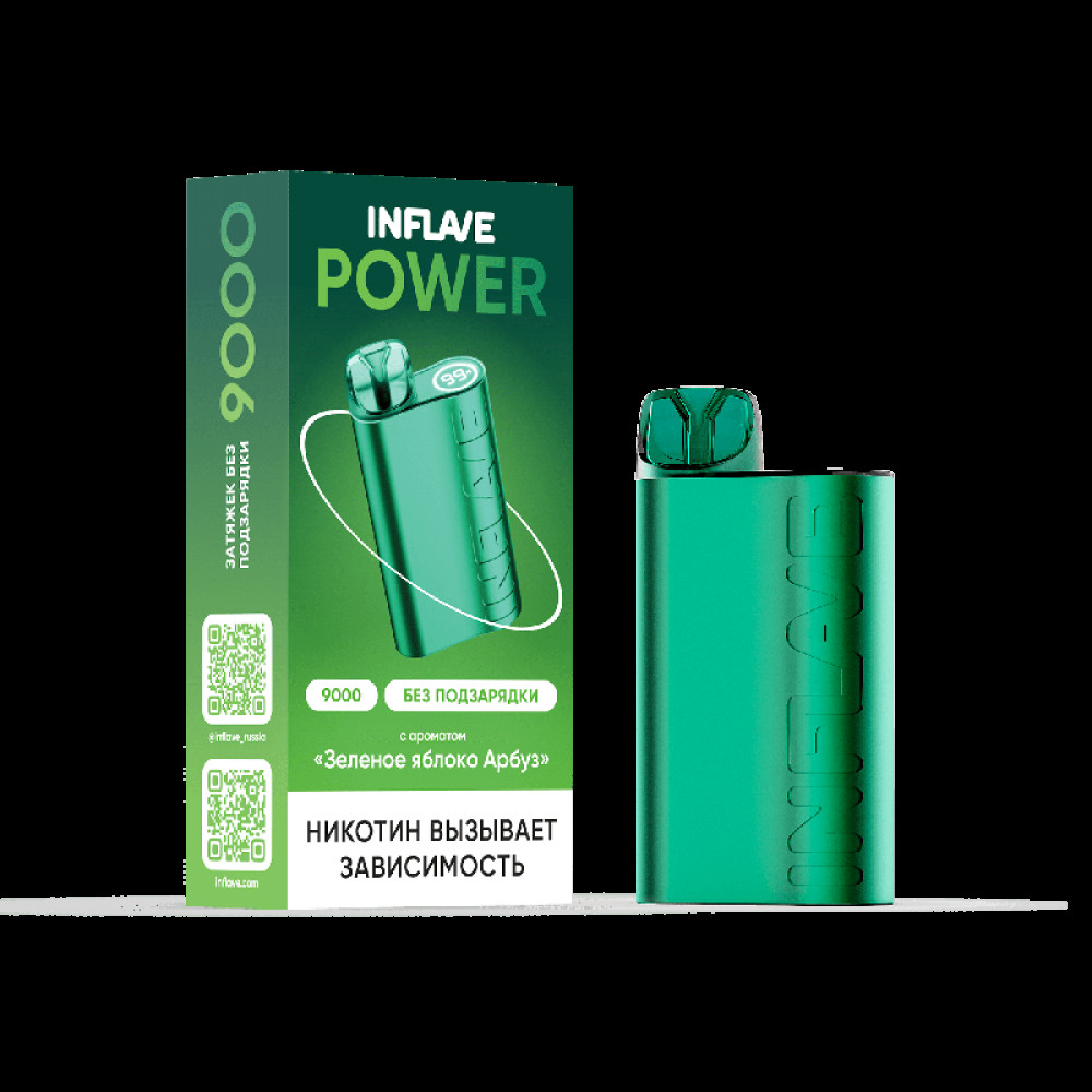 Электронная сигарета INFLAVE POWER 9000 затяжек Зеленое Яблоко Арбуз - купить в Россоши